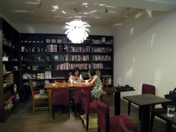 這區很逗趣 櫃子上有很多書本可以提供閱讀 還有一些咖啡器具等等 但他也有放洋酒耶 =.= 好詭異